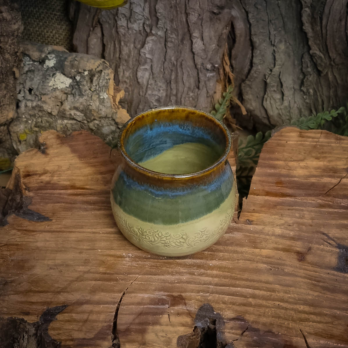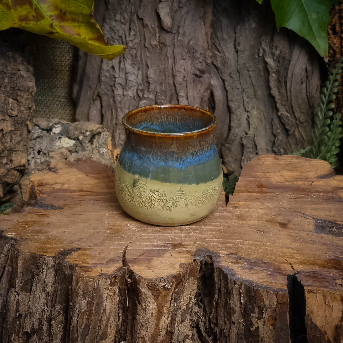 Ich habe die Kreationen in etwa zwei Wochen zusammengestellt. Ich verwende Ton aus Steingut, wiege ihn, knete ihn und dann geht die Party auf dem Plattenteller los. Sobald das erledigt ist, dekoriere ich den Artikel und füge bei Bedarf einen Griff hinzu. Sobald es getrocknet ist, stelle ich es in den Ofen bei 900 °C (1652 °F).