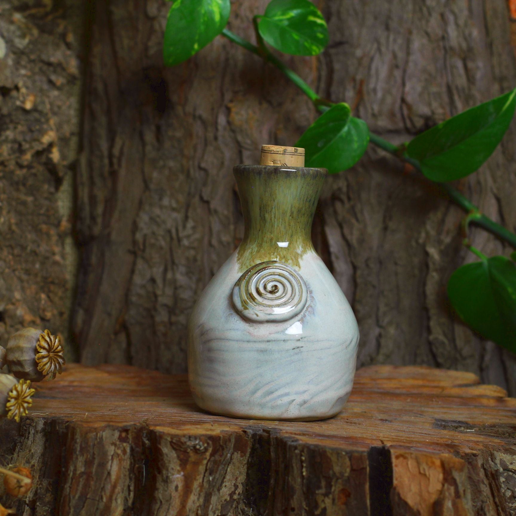 Ich habe die Kreationen in etwa zwei Wochen zusammengestellt. Ich verwende Ton aus Steingut, wiege ihn, knete ihn und dann geht die Party auf dem Plattenteller los. Sobald das erledigt ist, dekoriere ich den Artikel und füge bei Bedarf einen Griff hinzu. Sobald es getrocknet ist, stelle ich es in den Ofen bei 900 °C (1652 °F).