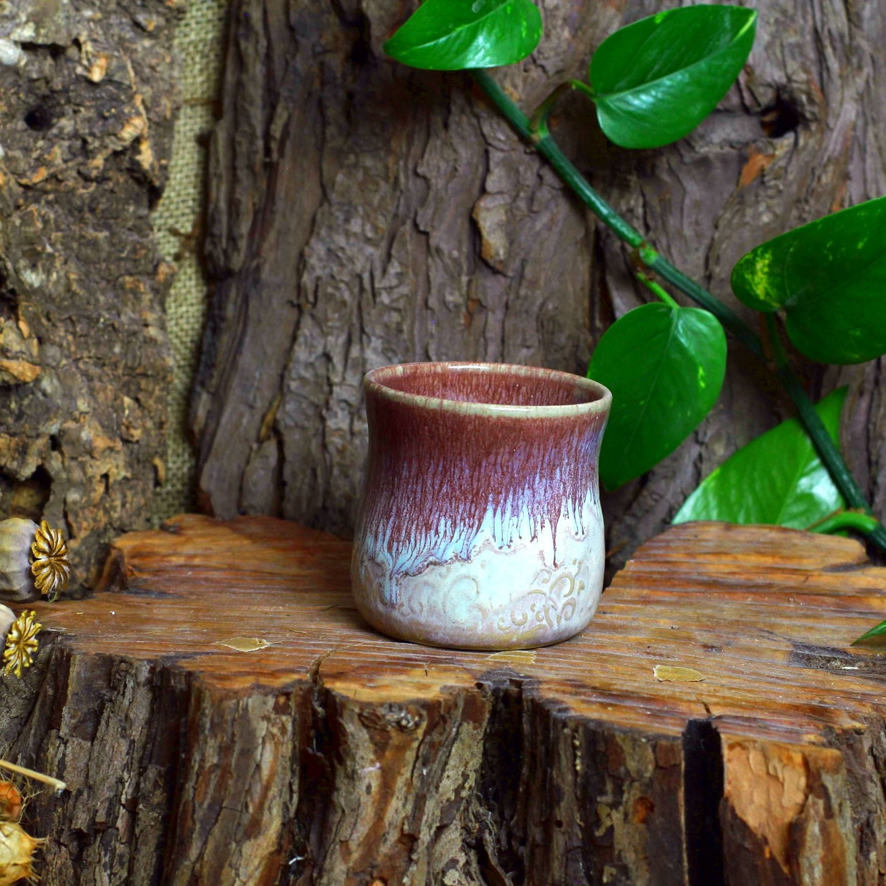 I put the creations together in about two weeks. I use stoneware clay, weigh it, knead it, and then the party starts on the turntable. Once that is done, I decorate the item and add a handle if necessary. Once dried, I put it in the oven at 900°C (1652°F) degrees.
