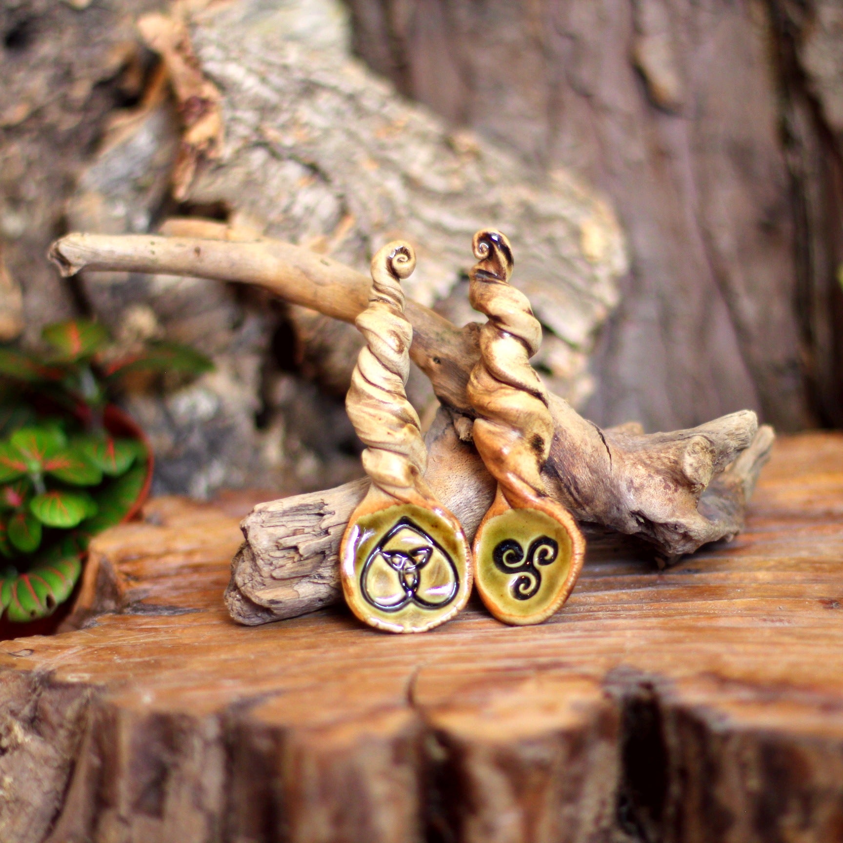 I put the creations together in about two weeks. I use stoneware clay, weigh it, knead it, and then the party starts on the turntable. Once that is done, I decorate the item and add a handle if necessary. Once dried, I put it in the oven at 900°C (1652°F) degrees.