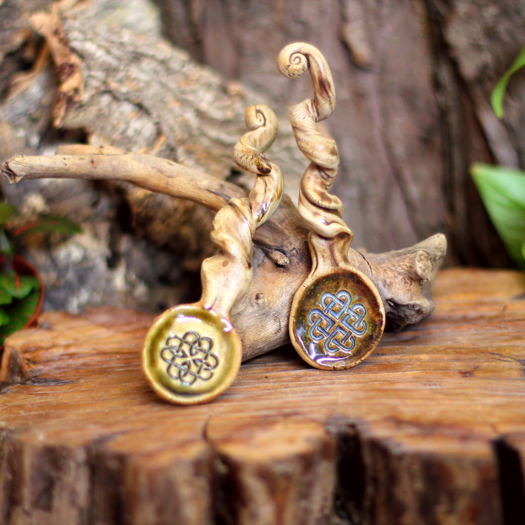 I put the creations together in about two weeks. I use stoneware clay, weigh it, knead it, and then the party starts on the turntable. Once that is done, I decorate the item and add a handle if necessary. Once dried, I put it in the oven at 900°C (1652°F) degrees.