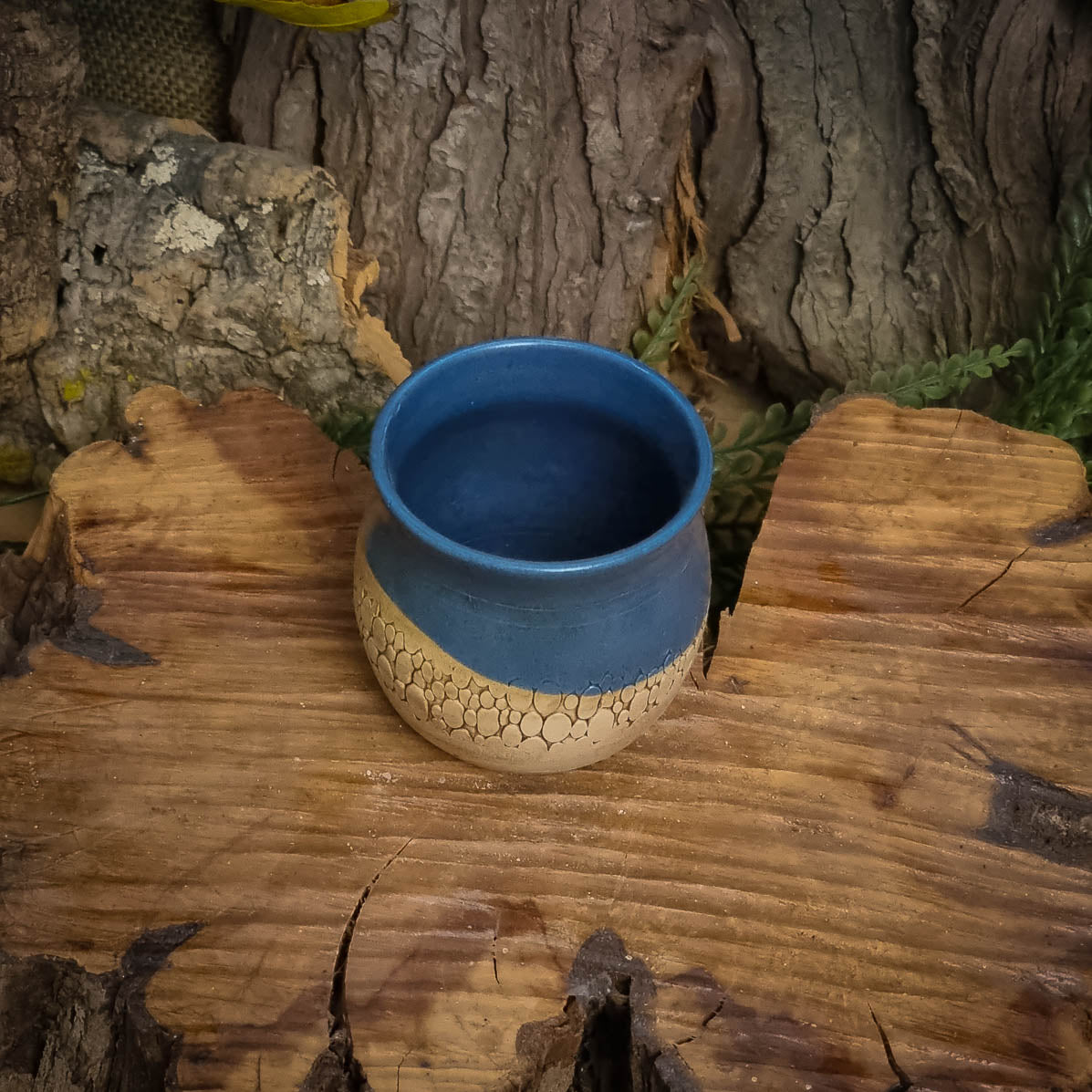 In ongeveer twee weken tijd knutsel ik de creaties in elkaar. Ik gebruik steengoed klei, weeg het af, kneed het, en dan begint het feest op de draaischijf. Als dat gebeurd is, decoreer ik het item en doe er eventueel nog een handvat aan. Eenmaal gedroogd, doe ik het in de oven op 900°C (1652°F) graden.
