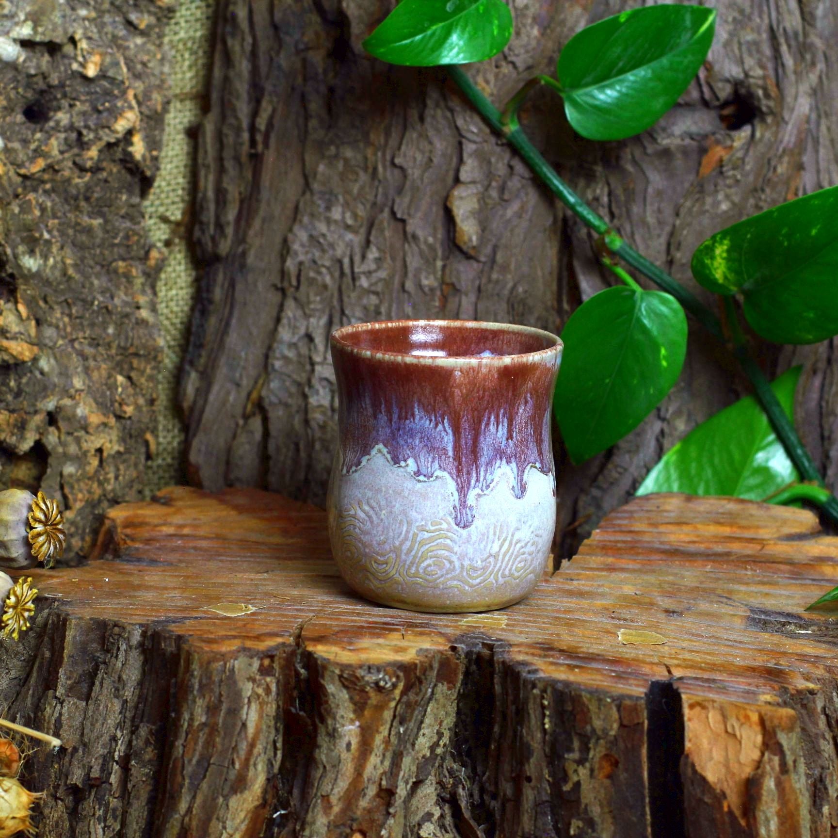 In ongeveer twee weken tijd knutsel ik de creaties in elkaar. Ik gebruik steengoed klei, weeg het af, kneed het, en dan begint het feest op de draaischijf. Als dat gebeurd is, decoreer ik het item en doe er eventueel nog een handvat aan. Eenmaal gedroogd, doe ik het in de oven op 900°C (1652°F) graden.