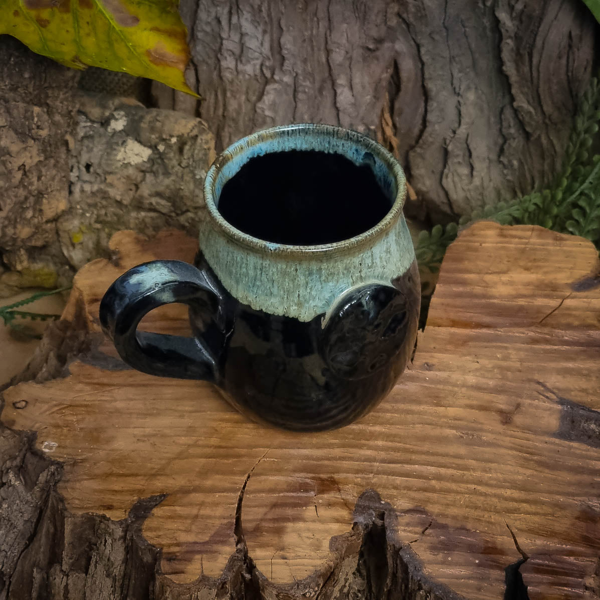 In ongeveer twee weken tijd knutsel ik de creaties in elkaar. Ik gebruik steengoed klei, weeg het af, kneed het, en dan begint het feest op de draaischijf. Als dat gebeurd is, decoreer ik het item en doe er eventueel nog een handvat aan. Eenmaal gedroogd, doe ik het in de oven op 900°C (1652°F) graden.